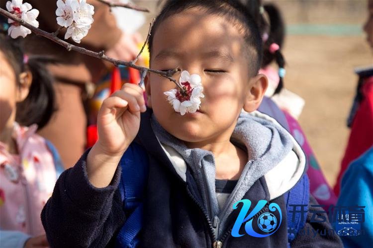 3月29日,北京市门头沟区妙峰山民族学校附属幼儿园的小一又友在闻杏花的滋味。