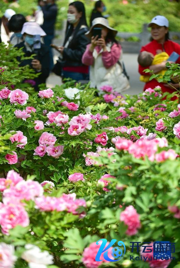 3月29日,搭客在河南省洛阳市王城公园观赏敞开的牡丹花。