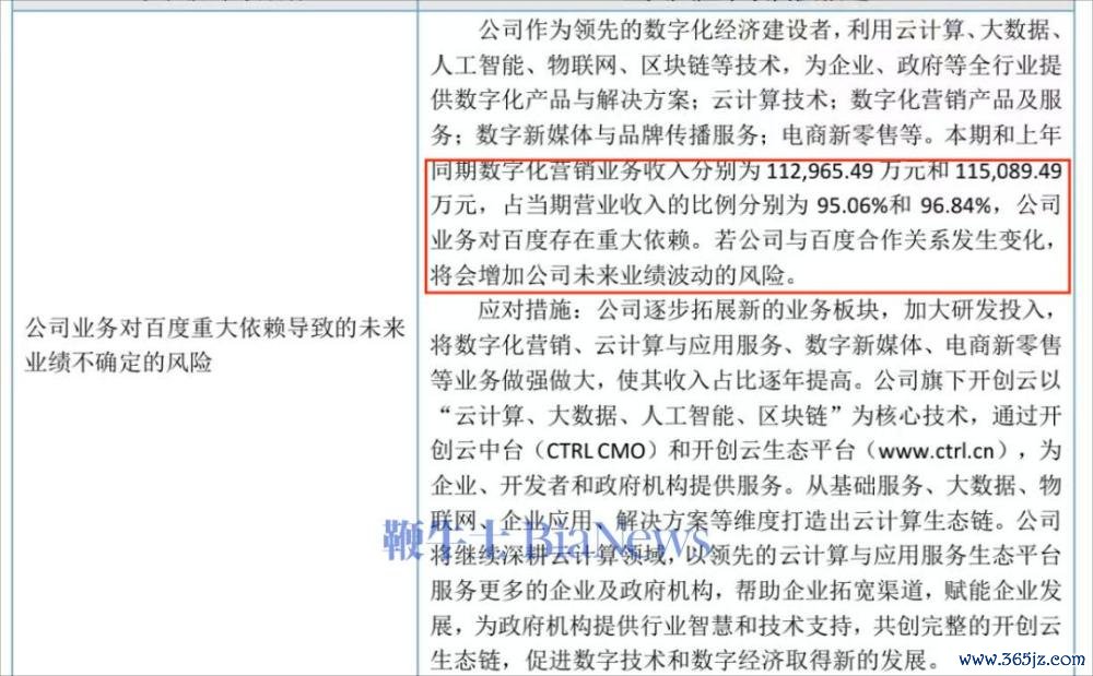 始创集团曾是百度第二大告白代理商,且是新三板上市企业。浪漫2024年末,始创集团超95%的营收仍来自于“数字化营销业务收入”。公司在2024年年报流露时曾经公开承认:“公司业务对百度存在首要依赖,若公司与百度投合相关发生变化,将会增多公司改日事迹波动的风险。”