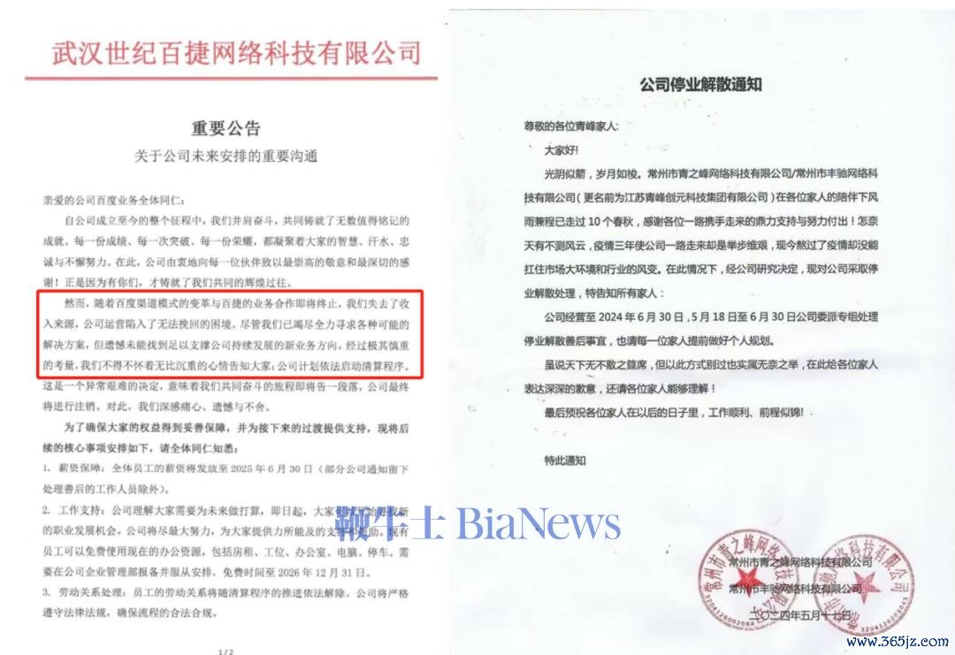 在更早之前的6月,百度在湖北地区的总代理商武汉世纪百捷集会科技有限公司发布声明称,“随着百度渠说念格局的变革与公司业务投合行将停止”,公司失去了中枢收入开首,运营堕入无法拯救的逆境,且未能找到支握发展的新所在,最终只可照章启动计帐。