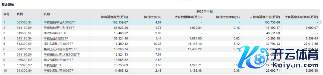 瑞银集团是握有ETF数目名轮番二的外资机构。Wind数据裸露,终局上半年末,瑞银集团握有141只ETF,数目相较于2024年年末的57只大幅擢升。具体来看,瑞银集团握有华泰柏瑞中证A500ETF的市值为10.57亿元,在其所握有的ETF中名轮番一。